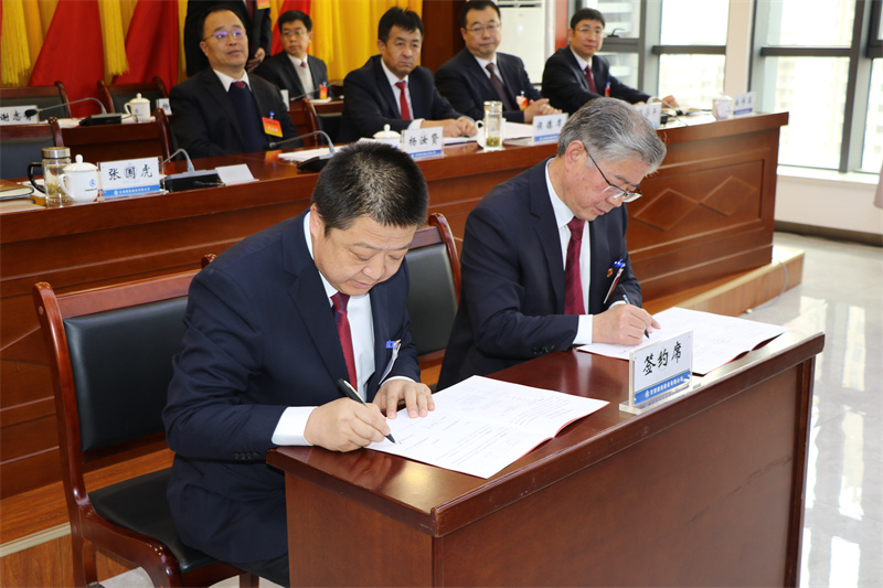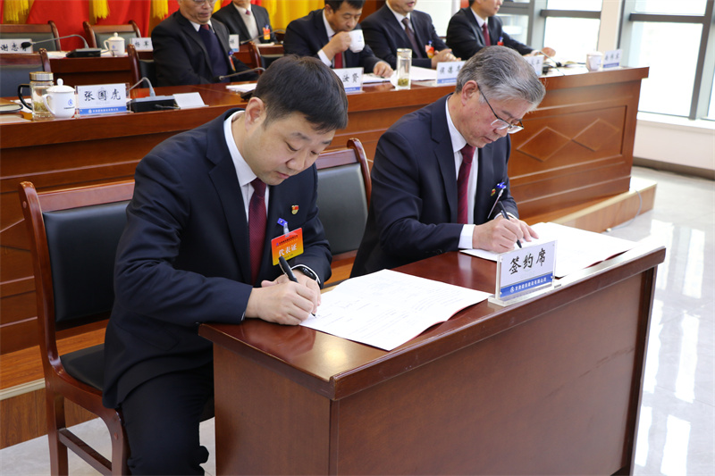 會上和各基層單位簽訂《2022年度經營目標責任書》。▲