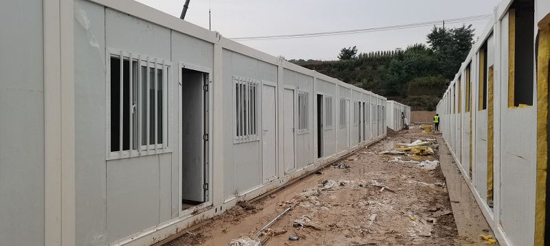 因疫情和連續降雨天氣,給施工造成一定困難,項目部全體人員風雨里、泥濘中拼搏共進,分秒必爭,加快“逆行”腳步,顧不得休息,24小時不間斷輪班施工,全力以赴,統籌協調人力、物力、機械。截至目前已完成100間集裝箱的框架安裝和40套墻板安裝任務,衛浴設施及水電也在緊張施工過程中,剩余未完成工程量的材料已全部發貨,其他要素正逐項配齊。
