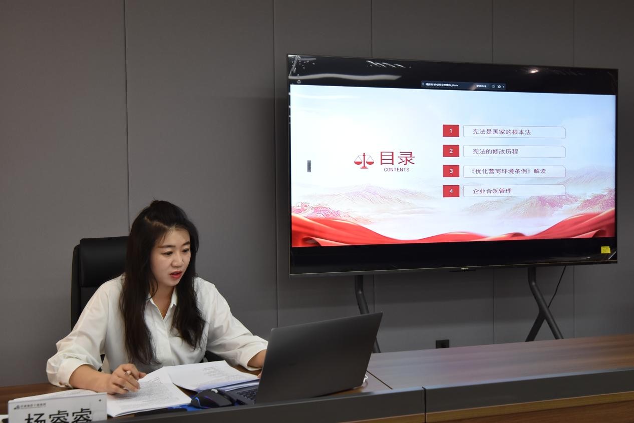 其中,裝備公司黨委聯(lián)合新區(qū)公司黨委、二建公司三分公司、置業(yè)公司、十建公司、交通公司、建設(shè)八公司邀請專業(yè)人士,分別為公司職工從憲法的地位作用、憲法的修改歷程、營商環(huán)境條例解讀、企業(yè)合規(guī)管理等方面,系統(tǒng)講解了憲法的基本常識及作用,就憲法對國有經(jīng)濟的保障規(guī)范等內(nèi)容進行了專業(yè)的講解,并結(jié)合《憲法》與企業(yè)生產(chǎn)經(jīng)營密切相關(guān)的條文,用典型案例重點講解了合同風(fēng)險防范、職工權(quán)益保護等方面的法律問題。隴東公司公司、陜新公司等公司領(lǐng)導(dǎo)圍繞“憲法宣傳周”主題為廣大干部職工群眾講授了一堂“普法課”。